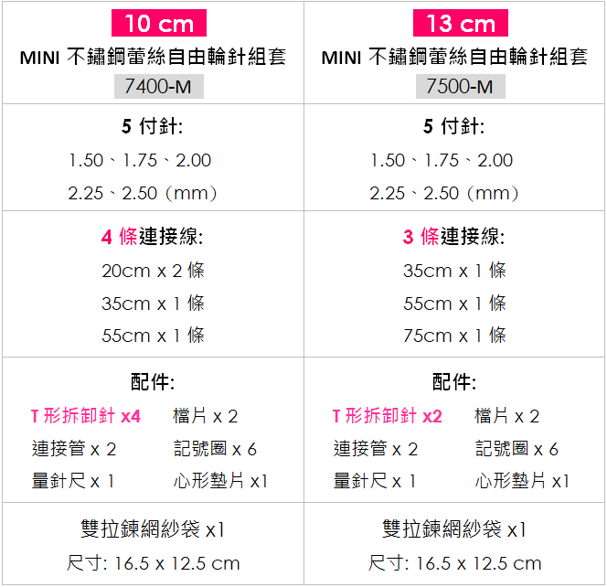 巧姑 [MINI] 不鏽鋼蕾絲自由輪針組套(5付)